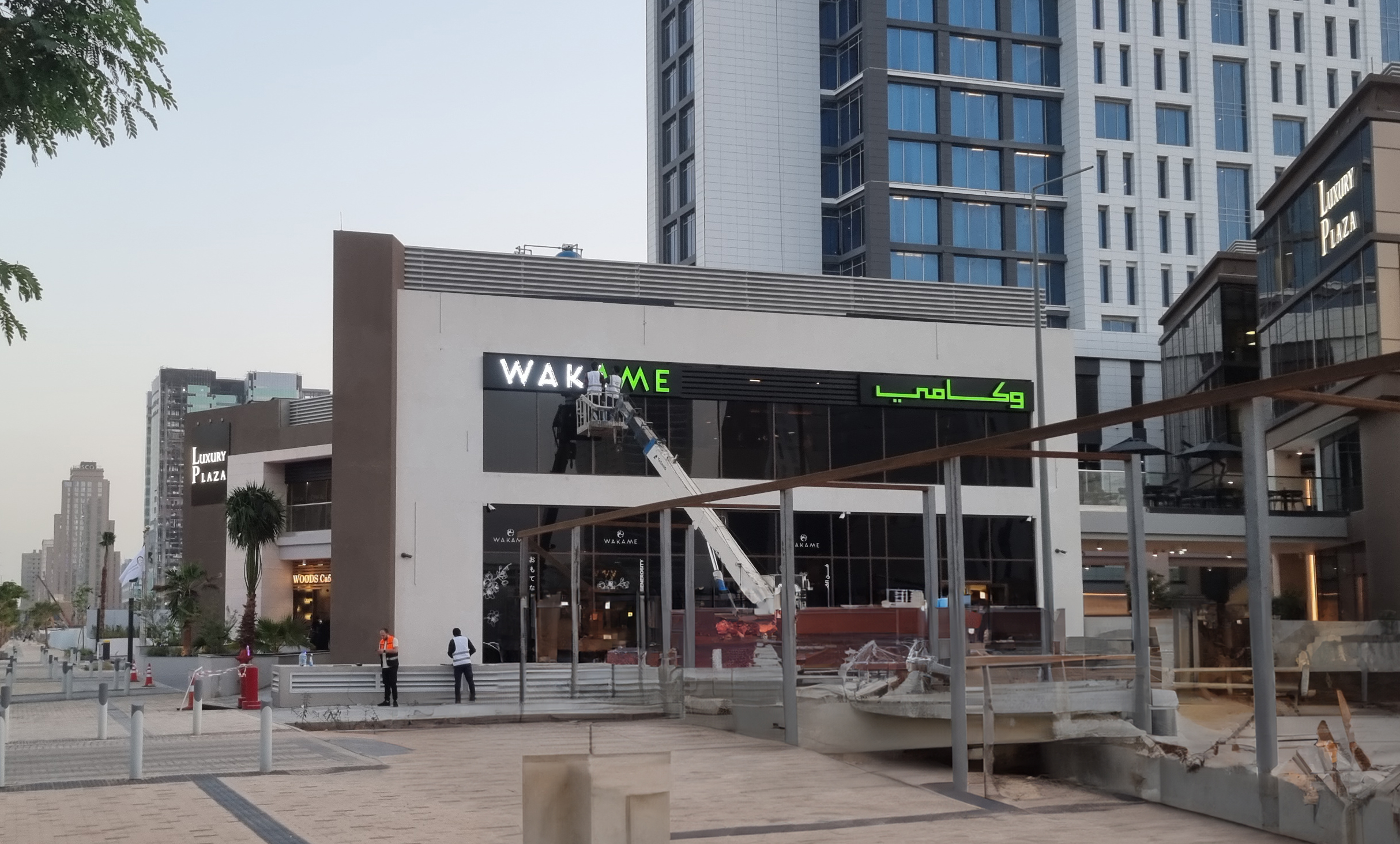 تصنيع وتركيب لوحة بارزة مضيئة لمطعم واكامي
